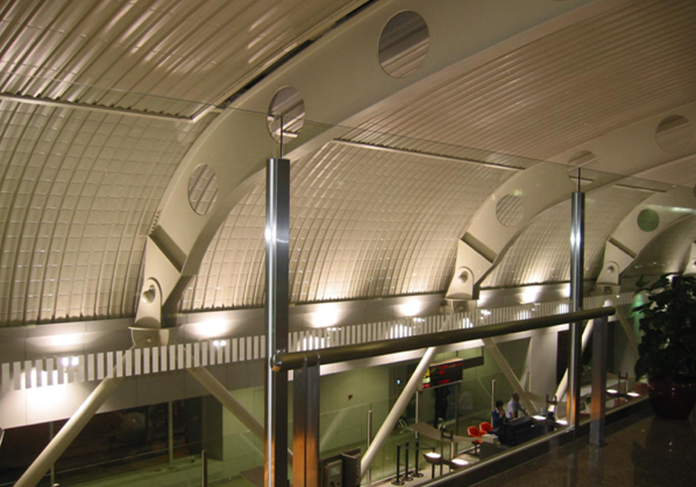 In most cases, envelope systems realize sound absorption by perforating the metal boards oriented towards interior and equipping them with non-woven fabrics and sound-absorbing wool (as well as a certain back cavity depth, if necessary), consequently reducing indoor noises. The common diameter of perforated holes is approximately 2.5mm. The smaller the diameter is, the more difficult the processing will be. But the better sound absorption performance will be realized. When the diameter of is below 1mm, they are micro-perforated. Different diameters can be flexibly selected in project design as required.