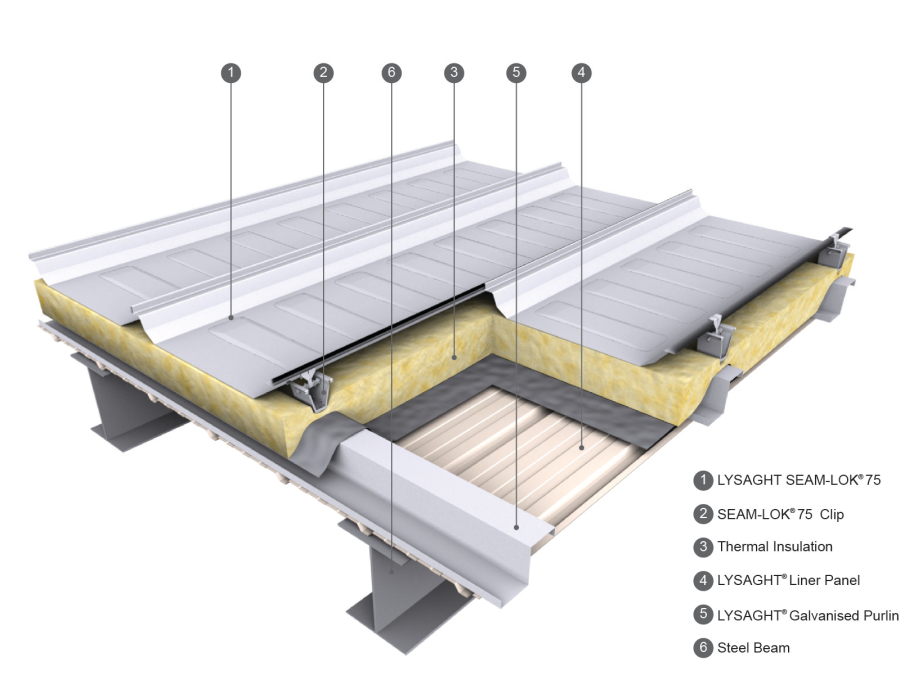 The double-skin roof panel made of Lysaght? system is internally filled with thermal insulation cotton. Combined strip-shaped /spot-shaped skylights and smoke exhaust windows are uniformly distributed on the roof. Not only fire-fighting, natural ventilation and daylighting requirements are met but also energy is effectively saved.