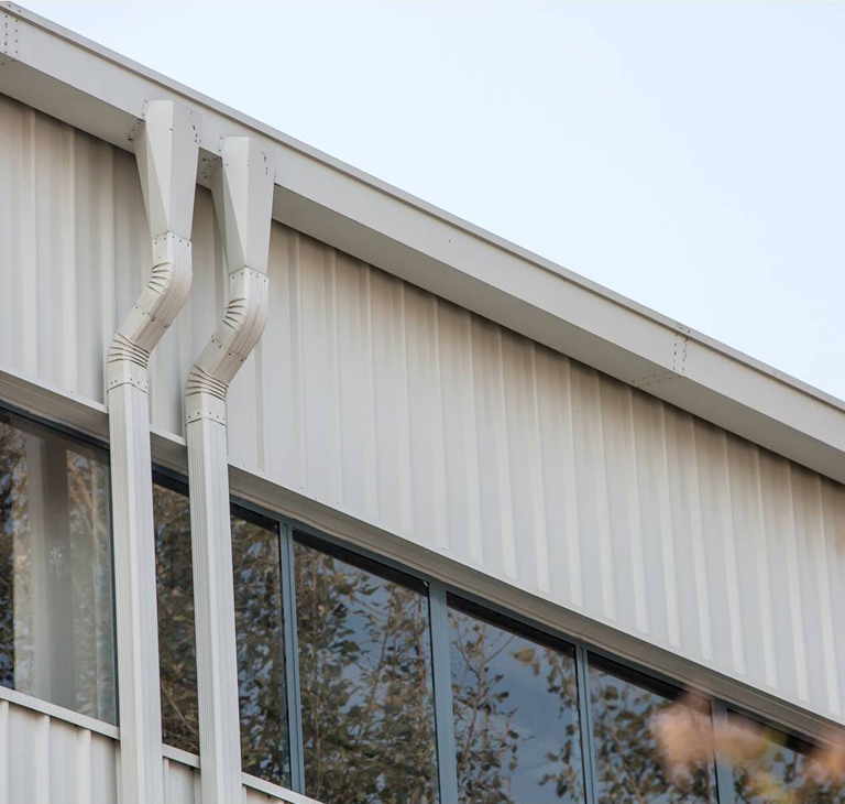 来实? 屋面开口支座采用3mm铝合金焊接,内衬硬质保温层,支座开口和屋面板型吻合,工厂预制成型,开口周边具备可靠的防水设计,底座迎水面设置雨水分流器和橡胶堵头,底座背水面有专用配套型材扣合屋面板板肋??谥ё胛菝姘逵锌煽康牧?,并可以随屋面一起滑动。