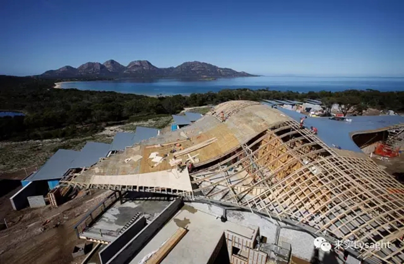 澳大利亚最新建成的超奢华萨福里度假村,由Circa建筑事务所设计,采用巨型钢骨架结构,与周围自然环境完美融合。