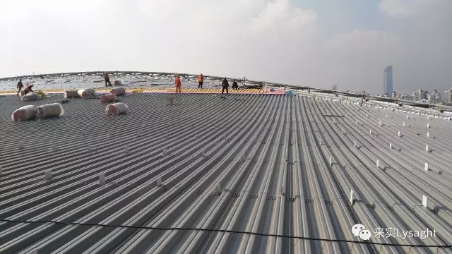 游泳馆屋面采用来实3W-DEK?穿孔板作为底板、屋面外板为FLEX-LOK?直立锁边系统;