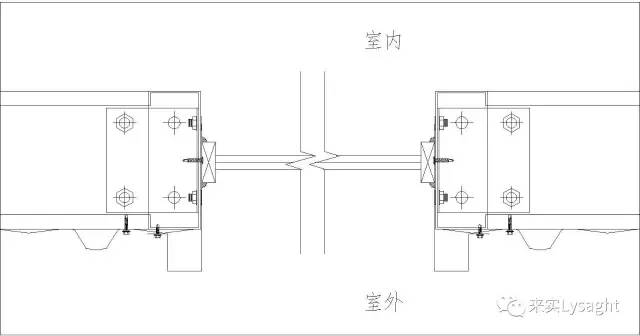 图7所示节点中,转角连接件采用不预开孔形式同时使用等效受力的自攻螺钉来固定洞口竖向檩条,这种方法可以在现场调整掉由于安装误差带来的洞口偏移,可以较多适用于洞口位置可以左右微调的洞口,如小门,小窗,通风口等。当竖向檩条会将横向檩条截断时(如门侧处),尚需将所有两侧截断檩条向洞口内侧加长一定长度,现场根据所有洞口处的微调情况切割该檩条,即可将所有洞口处理到位。