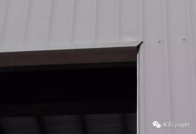 此种做法是考虑现场来裁剪板侧安装,但由于门窗定位一般是由建筑设计师定位,加上门窗宽度一般与压型板波峰间距模数不匹配,容易出现图2中的现场情况,切波峰会严重影响此处外观。