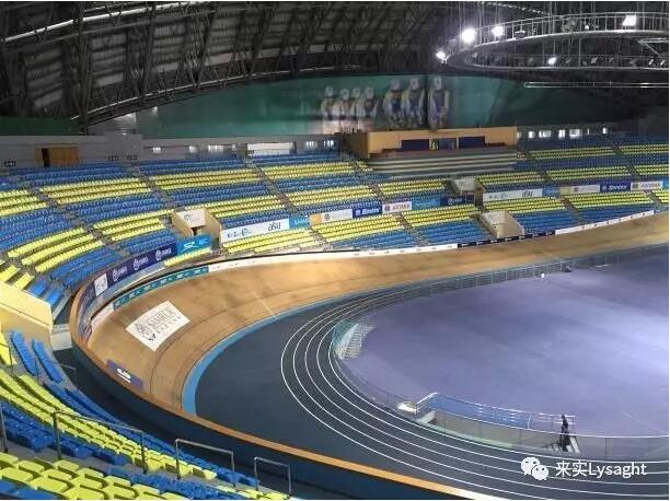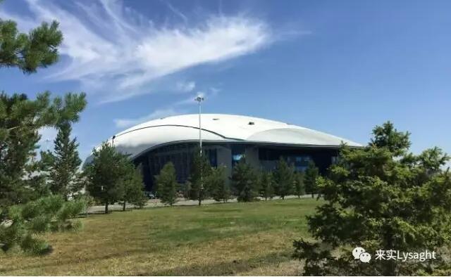 自行车馆,宛如运动员的帽子,形象生动。室内则是哈萨克斯坦国家自行车队的训练和国际比赛场馆。