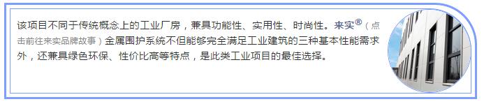 这个项目的墙面采用了100mm厚横铺来实诺杰?金属复合板墙面系统,板有效覆盖宽度1,000mm,双面企口,全岩棉芯材,容重120kg/m3。原材料采用博思格Clean COLORBOND? steel (洁面恒丽?板)(点击进入)和HUICAI steel (慧彩?板)。所有墙面转角处采用成品转角板,保证建筑外立面整体造型。搭接处20mm宽度的凹槽及竖缝位置的铝合金装饰条,使建筑外立面具有时尚的线条感。