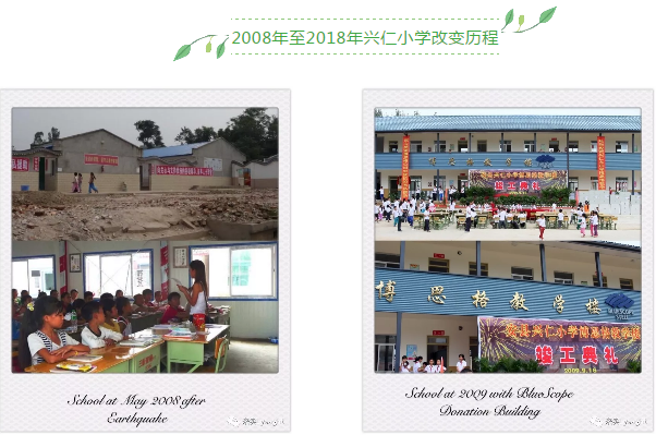10年的捐赠始于2008年地震灾害之后由博思格出资并建造的一栋轻钢建筑教学楼,继而是捐赠兴仁基础设施项目基金,用于修建新道路,操场和绿化以及购买教育设备。最近一阶段的捐赠是命名为“蓝色梦想基金”的捐赠,旨在奖励优秀学生和资助贫困学生生活。