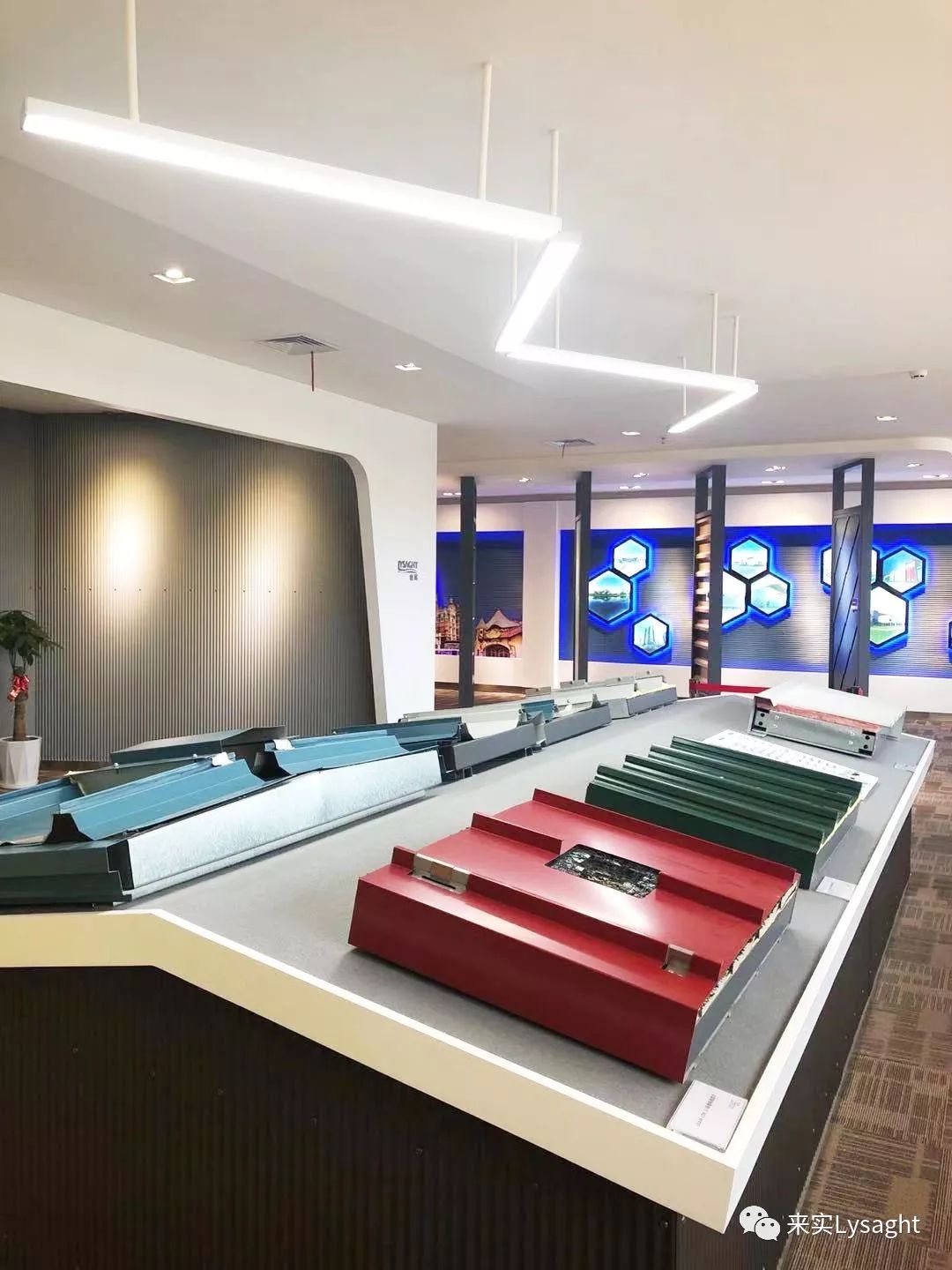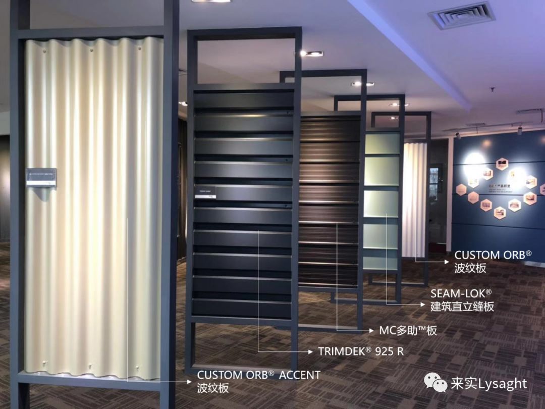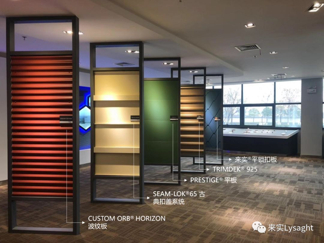 屋面设计形式的样品展示区域,更是结合了来实?产品的精华,对于来实?配套产品以及切割工艺有着完美的呈现。