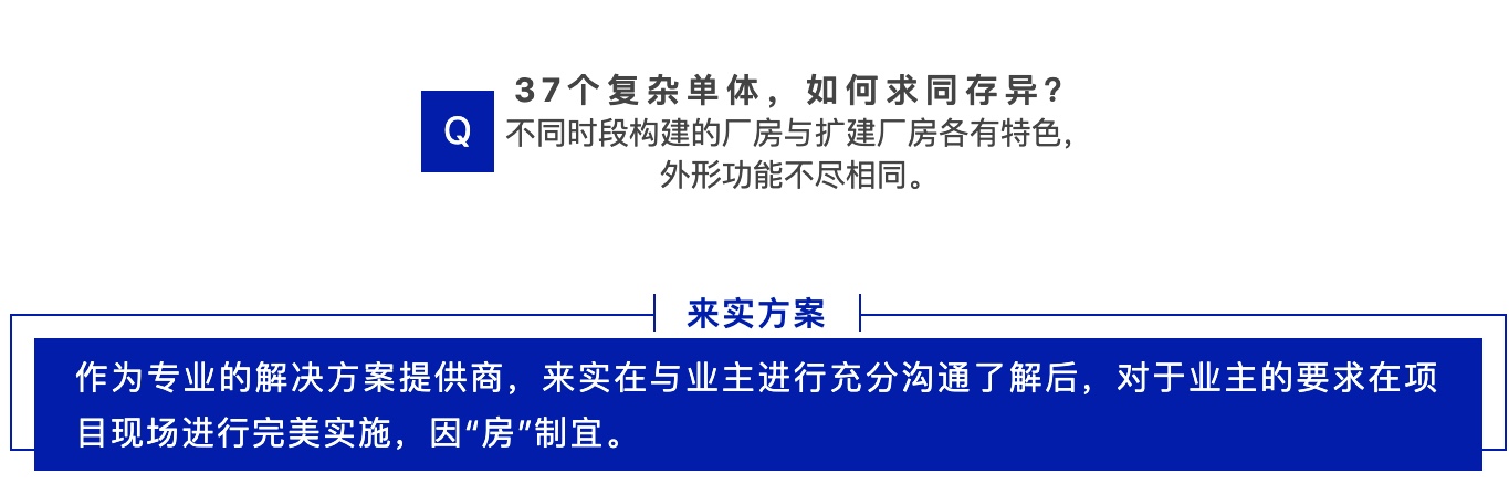 37个厂房单体互相独立,又相互关联,交织而立。在不影响原有厂房生产的情况下,需要在老厂房周围搭建新厂房,并同时进行改进,难度不可谓不大。来实丰富的项目经验与项目现场掌控能力,使此次的施工顺利开展并圆满结束。