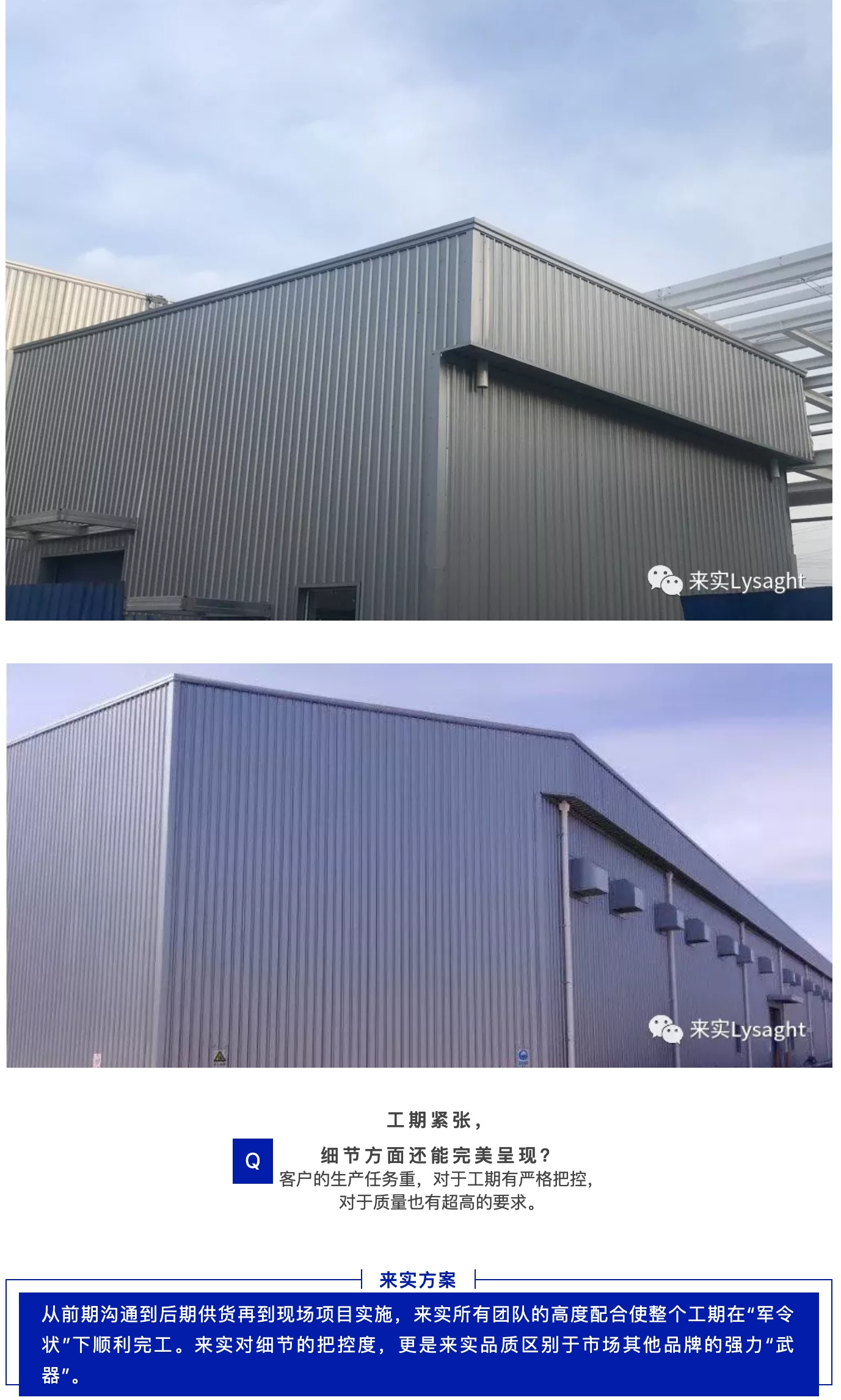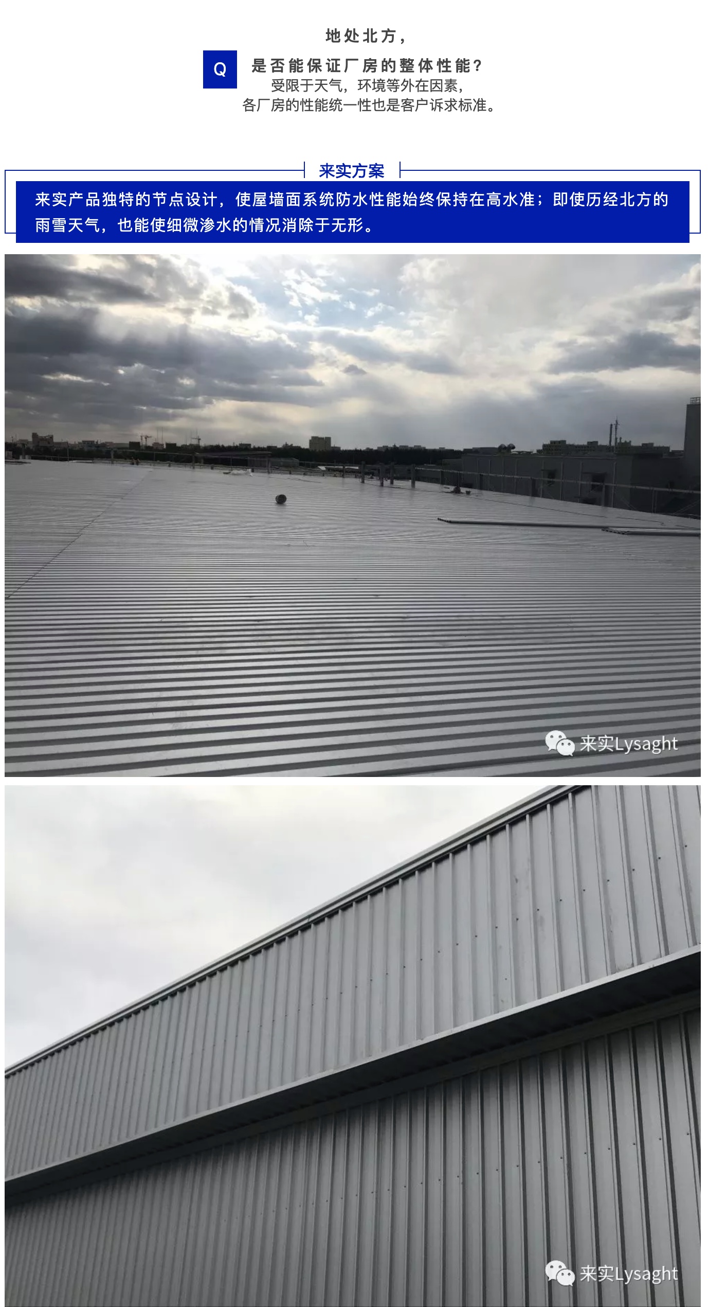 保温性能作为厂房的基本标准,在北方地区是尤为关键的因素。来实利用丰富的项目经验,结合来实成熟的屋墙面系统配件,在整体上对厂房的性能又做了大幅提升。